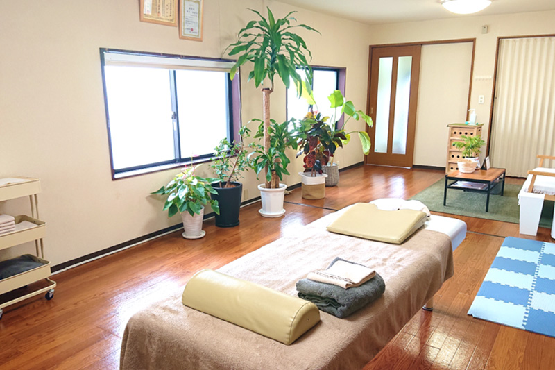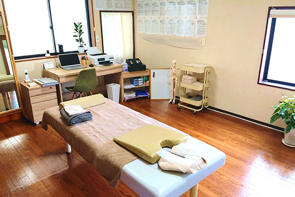 落ち着いて施術がおこなえるような空間となっております。少しでもリラックスをしていただき、身体も心も楽になってもらえればと思います。
