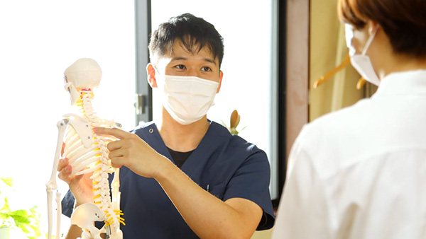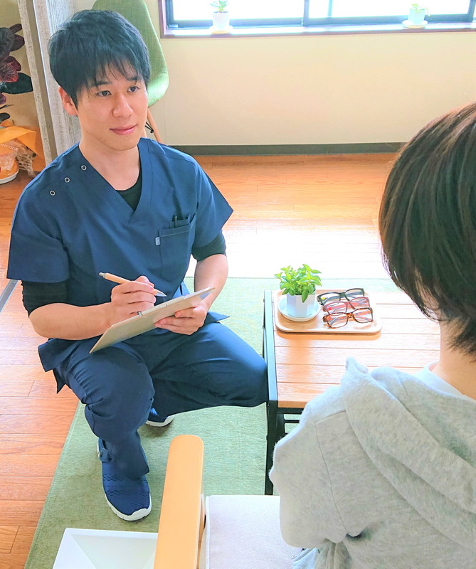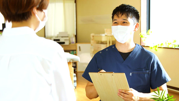 治療とは「施術者」と「患者様」がお互いの信頼関係をもとにした共同作業です。身体の状態を情報共有しながら日常生活での注意点や施術後の変化を確認していきます。